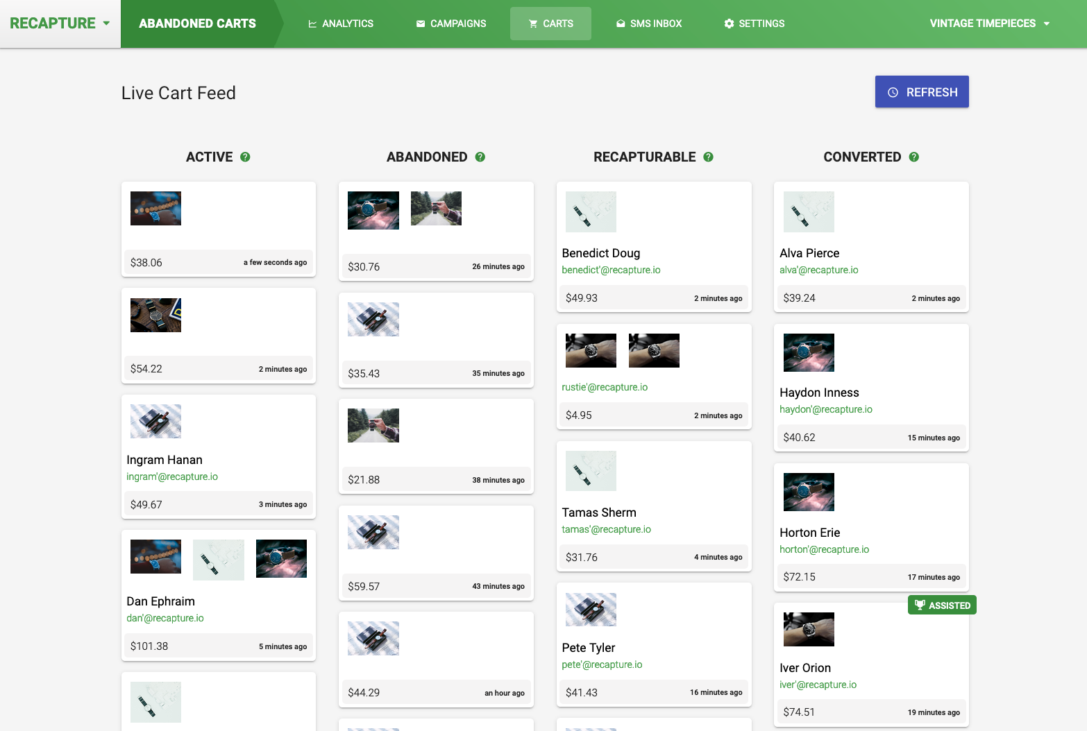 Abandoned carts represent a substantial number of customers that you could reach out to and secure a purchase.Unfortunately, Shopify doesn’t help with this, but Recapture does! To get the most profit out of your recovery email campaigns use a service that tracks BOTH abandoned carts and checkouts, likeRecapture.